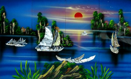 Brighten your living room with this special painting made from sea shell. Very detailed!