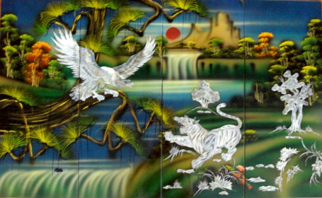 Brighten your living room with this special painting made from sea shell. Very detailed!